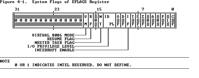 The systems flags of the EFLAGS register control I/O, maskable interrupts,