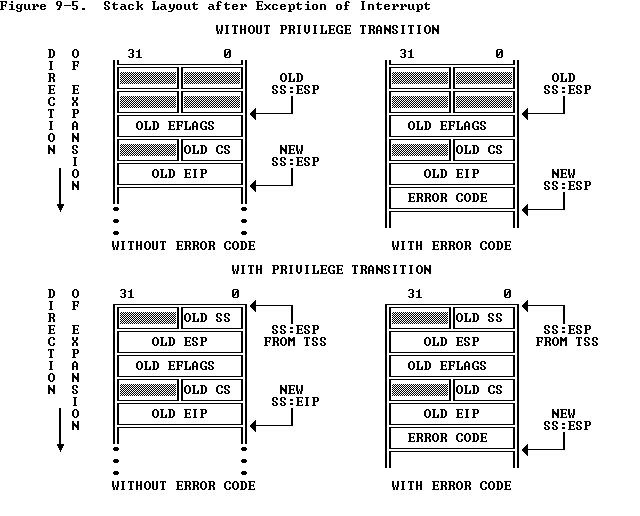 shows, an interrupt pushes the EFLAGS register onto the stack
